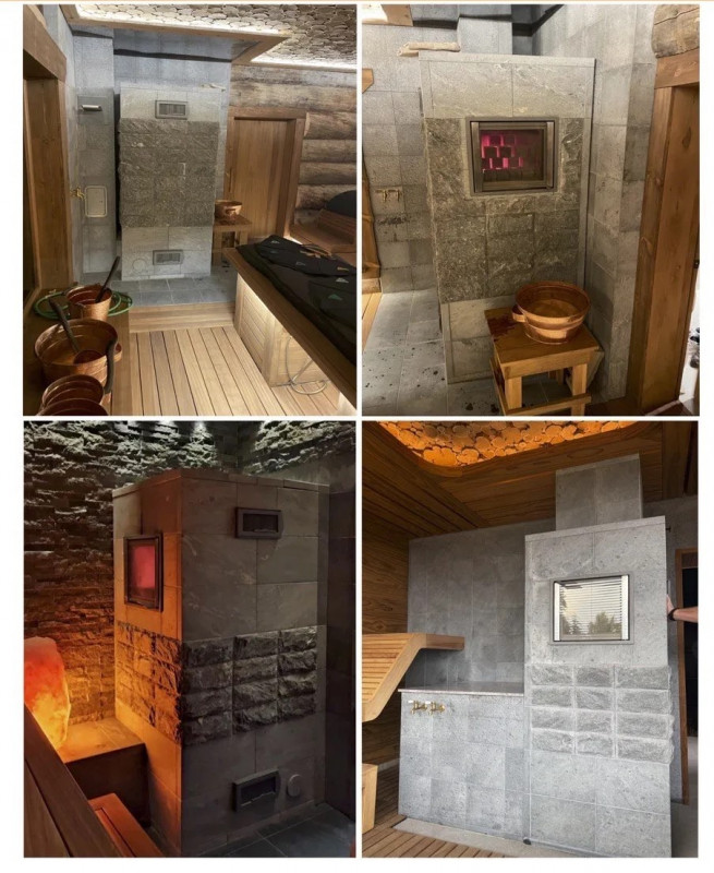 Вариант печи для бани по-Белому с внутренним корпусом(топкой) из искусственного камня(шамота) и внешним корпусом из талькомагнезита с финской фурнитурой