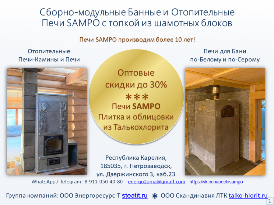Каталог печей SAMPO для Бани, отапливаемой по-Белому