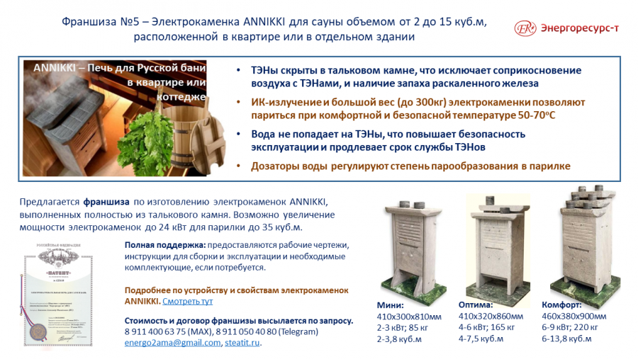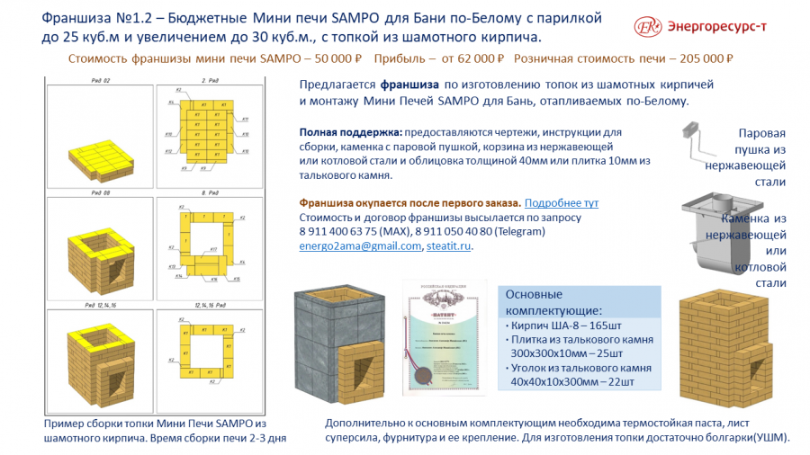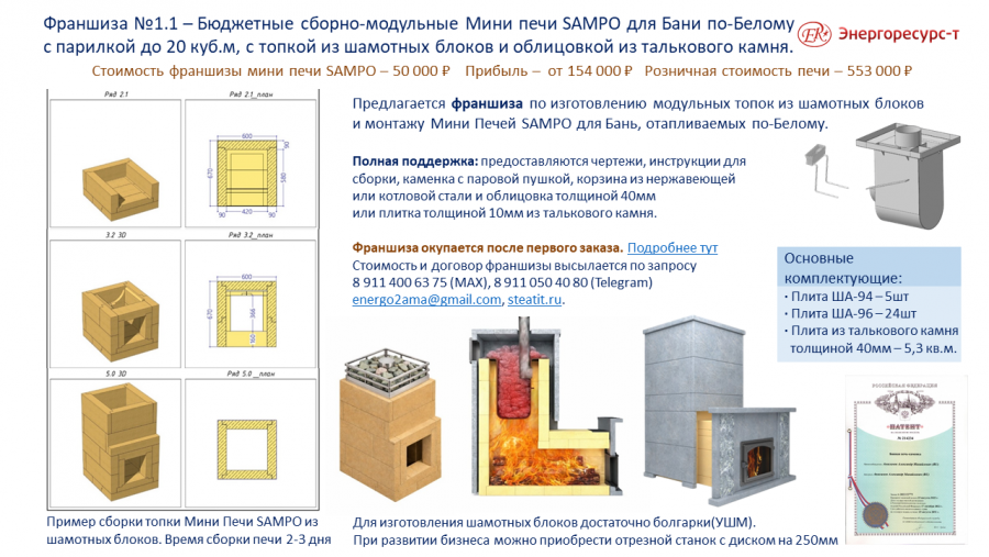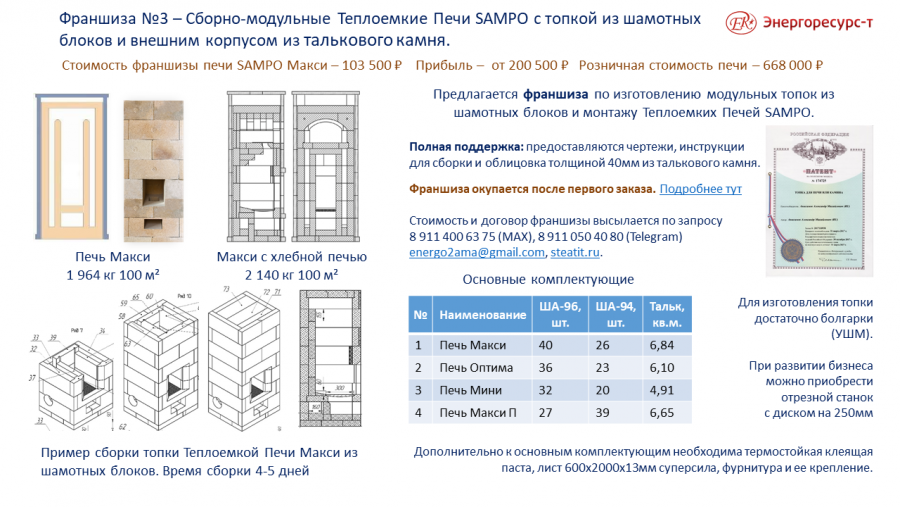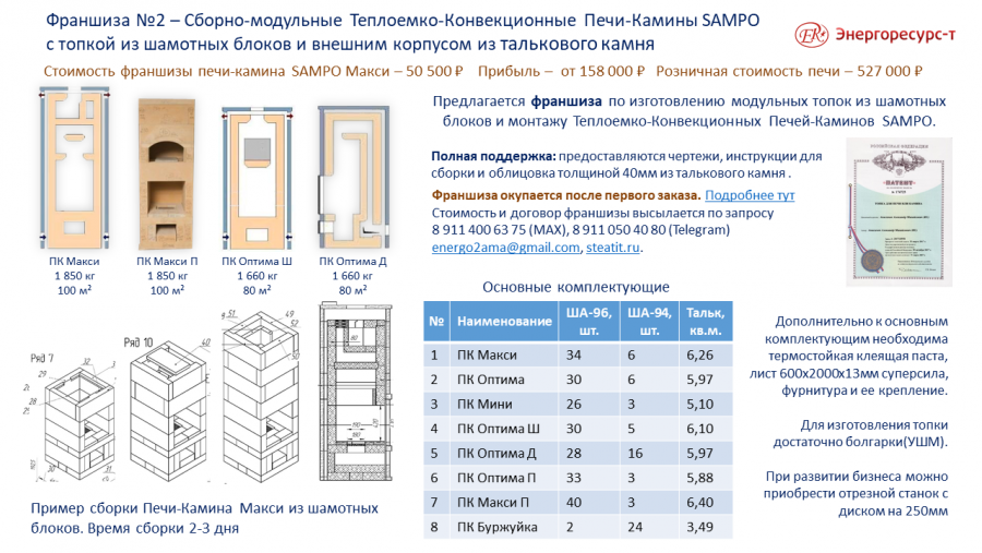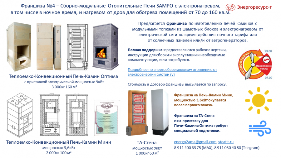 Подробнее по условиям франшиз Подробнее по теплоемким печам