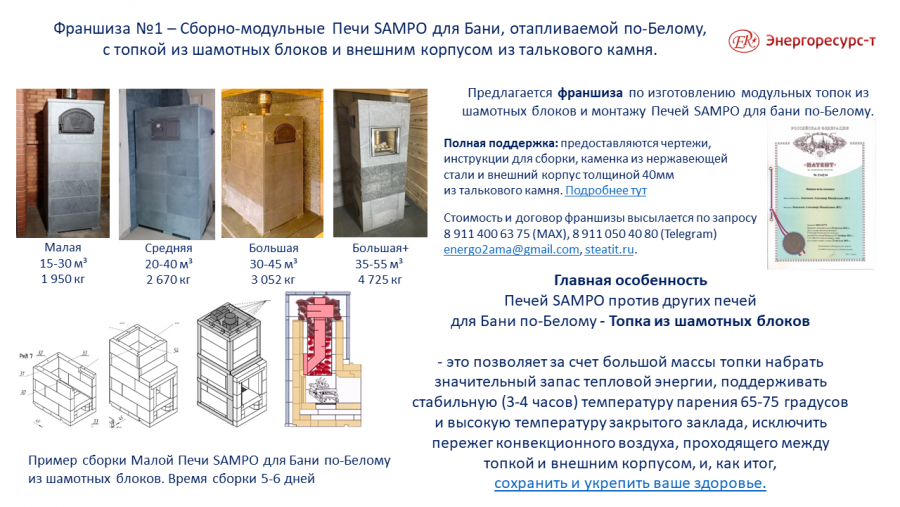 Подробнее по условиям франшиз Подробнее по банным печам по-Белому